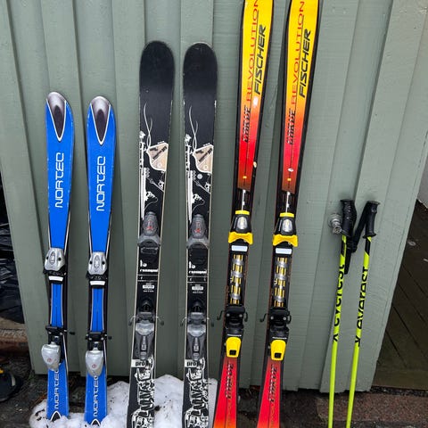 Hej! Jag säljer mina gamla skidor och pjäxor som jag vuxit ur.