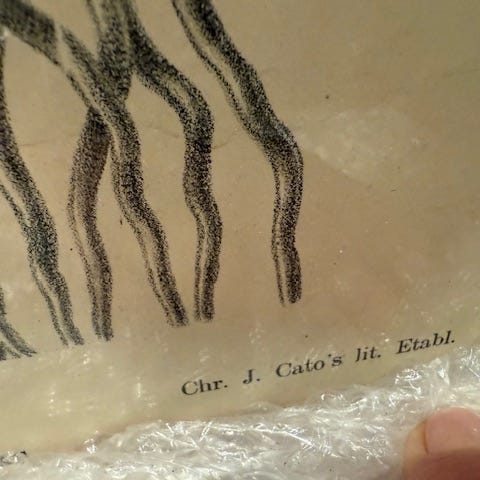 – Tydlig ålderspatina med veck/rynkor i pappret