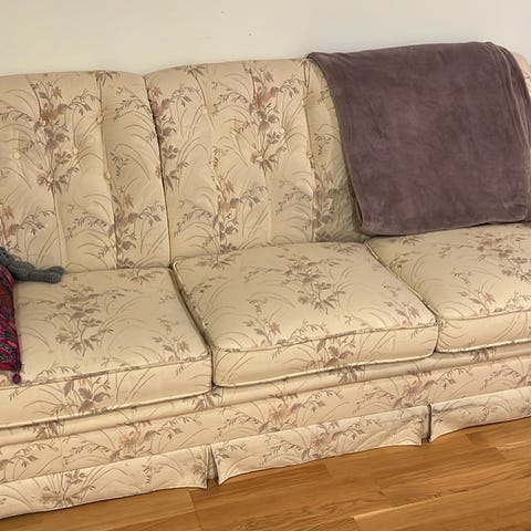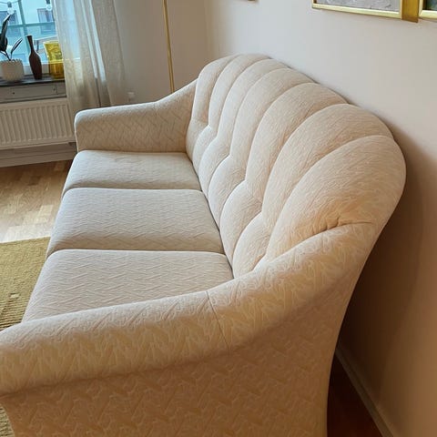 Jag skänker bort massor av möbler i använt skick. Upphämtning idag 19/1 eller imorgon förmiddag. En soffa, 2 fåtöljer, soffbord, 4 sittpuffar, en beige matta, 2 bord. En del behöver tvättas. Allt på bilderna som har en brun tejp bortskänkes OBS inget annat. Jag ser helst att samma person hämtar allt och behåller det man önskar/ slänger det man inte vill ha för att göra processen enklare.