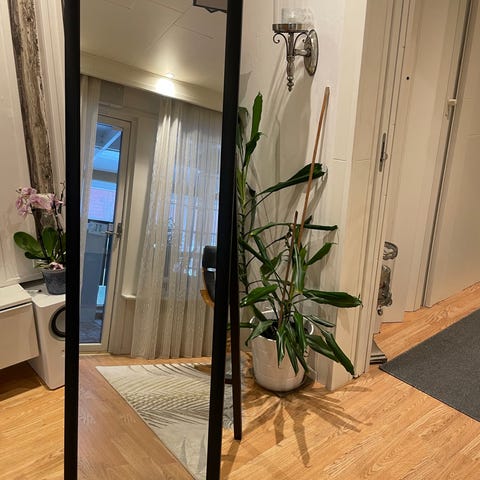 Säljer en golvspegel från IKEA, modell KARMSUND. Dekoration på toppen saknas.