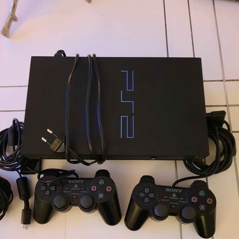 PlayStation 2 säljes i fint skick. Komplett med två original handkontroller, kablar, mikrofon och två spel. Konsolen fungerar som den ska och är sparsamt använd. Perfekt för dig som vill spela klassiker eller ha en stabil retro konsol hemma.