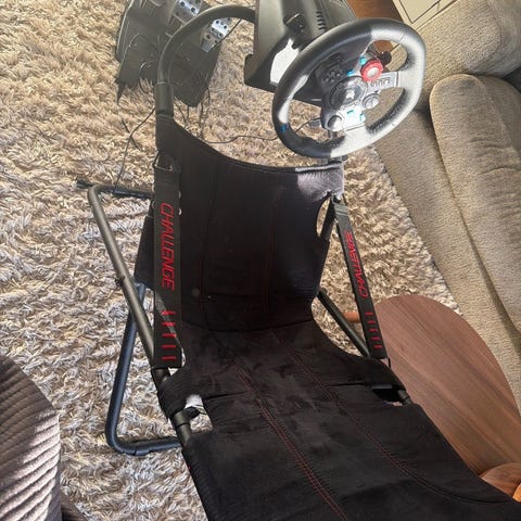 Medföljer även gamingratt med växel samt stol/rigg där ratt och växel kan monteras. Perfekt paket för racing- och spelintresserade.