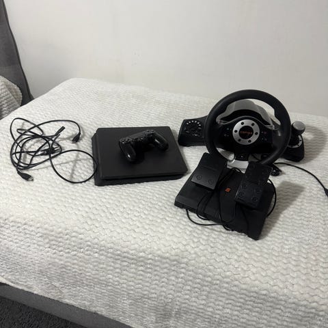 PlayStation 4 Slim – Paket med racingratt & stol