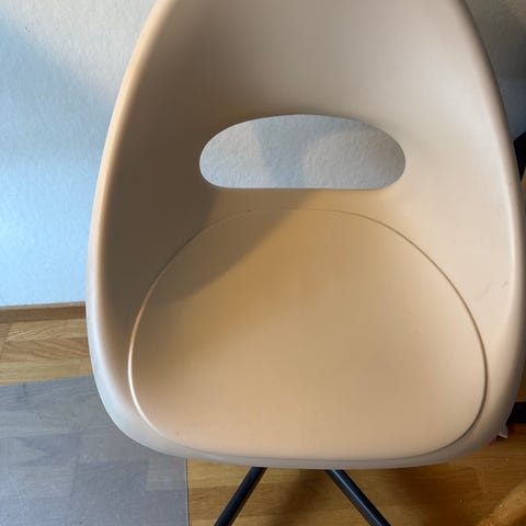 IKEA matstol för barn. Stolen har en enkel design med vita ben och en vit sittdel inklusive bricka. Passar för småbarn vid matbordet.