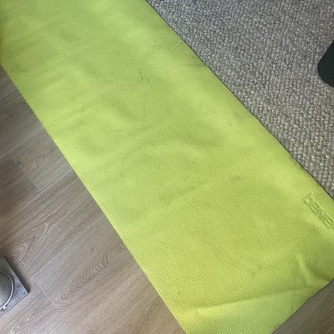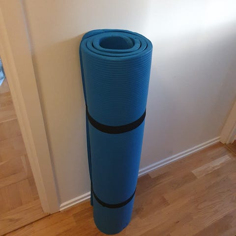 Träningsmatta tillverkad i skumgummi med en tjocklek på cirka 1,5cm. Mattan är grön/grå och utrustad med en svart bärrem för enkel transport. Knappt använd, som ny!