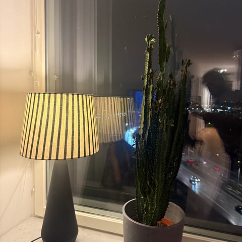 En jättestor novemberkaktus som egentligen är flera som planterats i en stor kruka. Blommar både i vitt och rött. Lättskött växt som brukar blomma två gånger per år. Kan dock vara lite kinkig med blomningen när den flyttats, men när den anpassat sig till sin nya plats kommer blomningen igång igen.