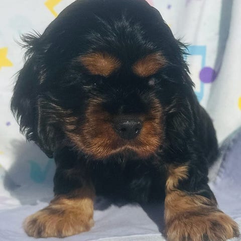 Långhåriga normalstor hanvalp efter sociala, trevliga och meriterade föräldrar, som är ryggröntgade och ögonlysta.