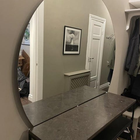 Elegant spegel som passar både att luta mot vägg eller hänga stående eller liggande med inbyggda nyckelhålsfästen.
