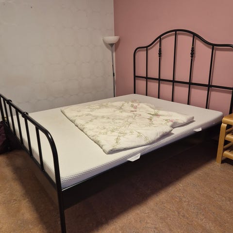 IKEA Vevelstad, vit sängram 160 cm bred. Sängramen är använd ett kort tag och är i mycket bra skick!