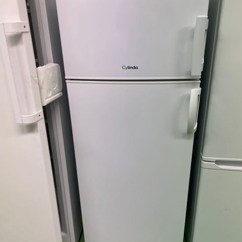 Candy kombiskåp med kyl- och frysfack. Vit färg och standardstorlek. Passar för allmän användning i hem eller mindre kök. Det fattas en frys back och ett dörr fack.