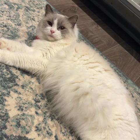 Han katt, han är jätte snäll. Han är verkligen snäll mot barn. Han är verkligen snäll mot barn. Jag hoppas att han får en lika snäll familj som honom.