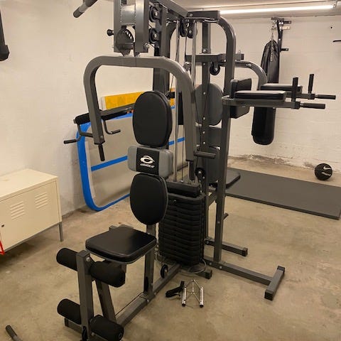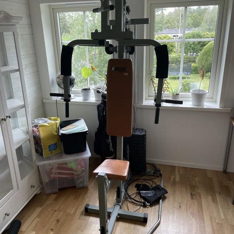 ”Ett kompakt multigym med 5 träningsstationer. Apparaten ger ett stort urval av övningar och de flesta övningarna visas i övningsplanschen som följer med. Kompakta multigym passar bra för de som önskar en varierad träning för hela kroppen och som inte önskar att använda för stor plats i hemmet. Antalet övningar gör att du kan träna de muskler som du önskar. Höjden på apparaten (210 cm) gör att den passar in i de allra flesta rum. Viktmagasinet är på 57 kg och Weiders unika sätt att dra vajrarna gör att du i vissa övningar kommer att få upptill 125 kg motstånd.Specifikationer:- Mått. 196 x 110 x 210 cm. - Totalvikt på 138 kg. - Max användarvikt är 135 kg”