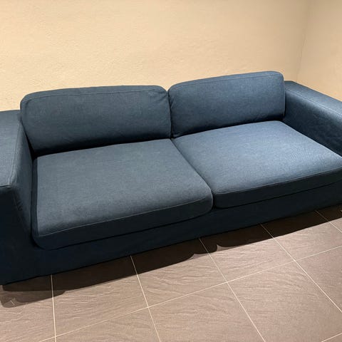 Blå solblekt howardsoffa bortskänkes. Den är köpt på sofa store för många år sen och är som sagt solblekt och lite smutsig. Klädseln kan man dock ta av och tvätta. Övrigt fyller den sin funktion och har fina ben.