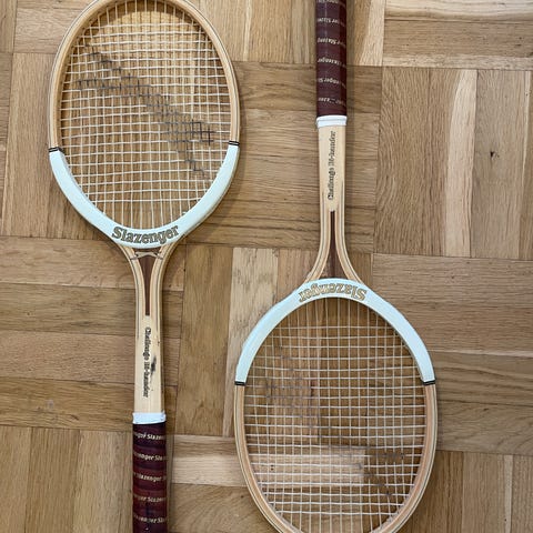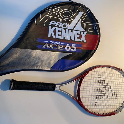 J. McENROE tennisracket för juniorer som köptes 1983. Användes ett halvår och sedan dess hängt i ett förråd. Originalfodral medföljer. Vid ngt tillfälle hällt ut sportdryck som fläckat fodralet på insidan (bild 10). I fodralet även överstruket namn och adress. Tennisracket i mycket fint skick enligt bilder.