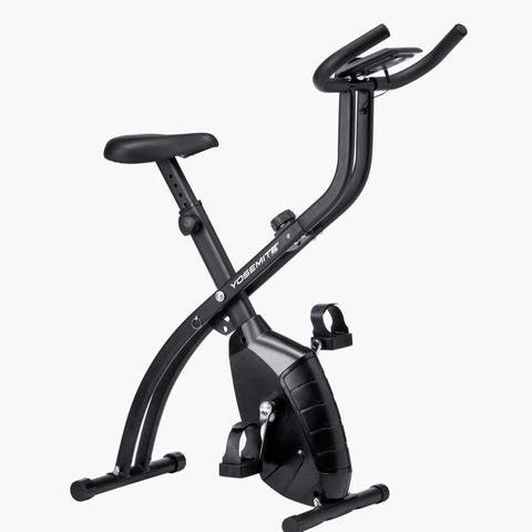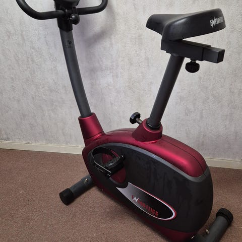 Energetics Ergometer motionscykel med digital display för träningsinformation. Utrustad med justerbart säte och handtag för anpassad träning. Passar för hemmabruk och konditionsträning.