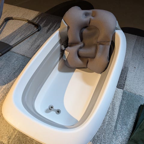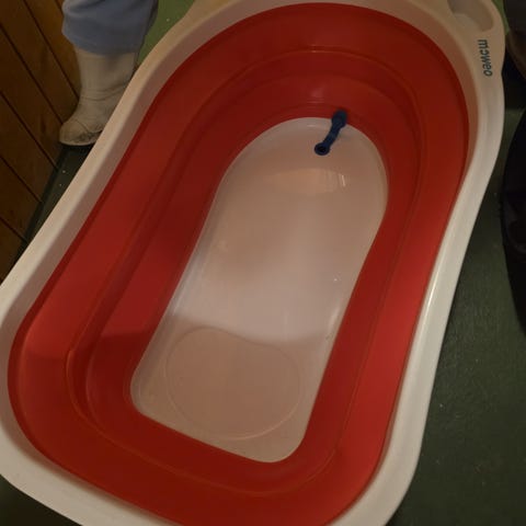 Smidigt och praktiskt hopfällbart badkar för bebis. Tar lite plats vid förvaring och är lätt att ta fram vid behov.