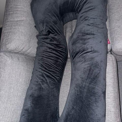 Mjuk och bekväm kroppskudde i grå, tvättbar plysch, sparsamt använd och i fint skick. Kudden har en U-formad design som omfamnar kroppen och ger avlastning för rygg, mage, axlar och höfter. Perfekt för dig som vill sova mer ergonomiskt eller behöver extra stöd vid vila.
