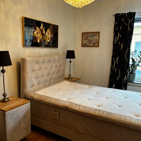 Ställbar säng med gavel och sängbord