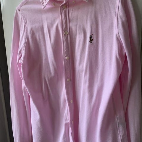 Polo Ralph Lauren skjortblus i storlek S för kvinnor. Tillverkad i bomull. Vit och blå randig. Skjortan har lång ärm och knäppning bak.