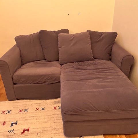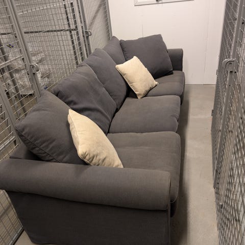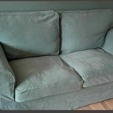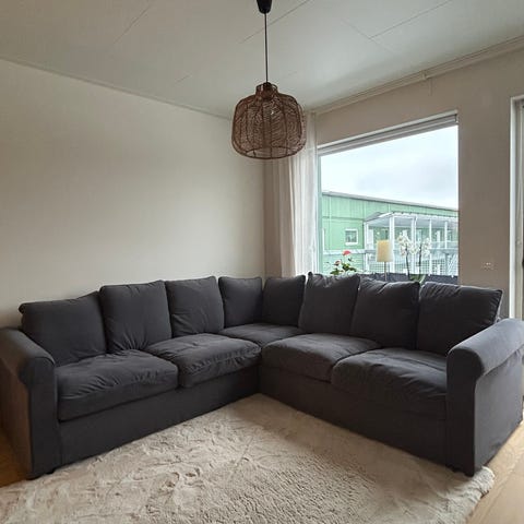 Vit soffa från ikea,märket Grönlid. 4 sits med dubbla schäslonger(jag har bara en ditsatt just nu. Den andra står fritt bredvid) tyget är lite missfärgat och soffan är använd men är utöver det i väldigt bra skick. Nypris 15.000 och finns inte att få tag på längre. Nytt tyg finns att få tag på ikea. Säljes endast då den är för stor.