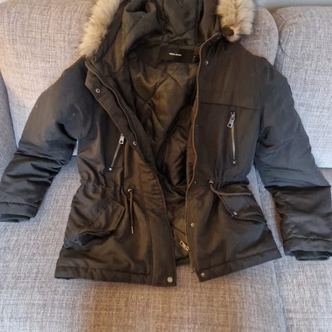 Vacker vinter jacka med pälskrage