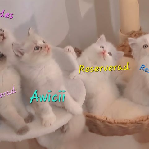 Dessa godingar är pigga, sociala, busiga och nyfikna efter sina trevliga föräldrar. Uppväxta i hemmiljö samt vana med små barn, andra katter, damsugare och allmänt vardagskoas. Välhanterade och vana med kloklippning. De är jättegosiga och tillgivna samt otroligt kelen och vill gärna ligga i knät och mysa. Äter båda torr och blötmat av bra kvalitet.