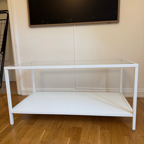 Marmormönstrad dekorplast på nedre skivan. Bara att byta ut om så önskas.
