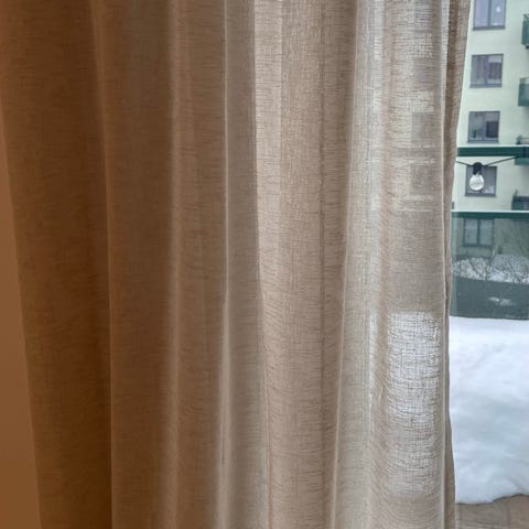 Hemtex gardin i beige färg. Längd 240cm. 6 st som använts bara en månad vid lägenhetsförsäljning. 100:- / gardin