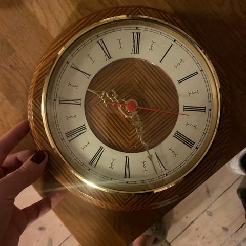 Moraklocka / golvur i allmogestil. Vitmålad med kurbitsdekor. Små skavanker men i bra skick i övrigt. Perfekt som inredningsdetalj i hall eller vardagsrum.