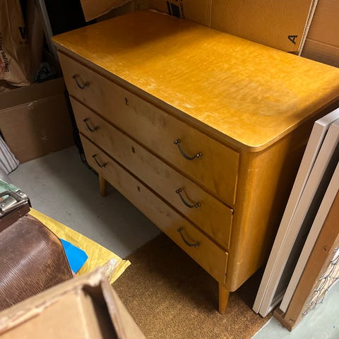 Byrå enligt bild, fyra stora lådor, två små. Storlek bredd 85 cm, höjd 83 cm, djup 40 cm. Finns för avhämtning i Umeå