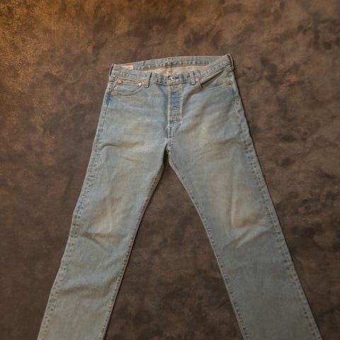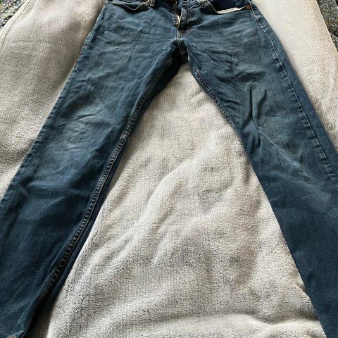 Blå Levis jeans, har synliga tecken på användning. Säljes i befintligt skick.