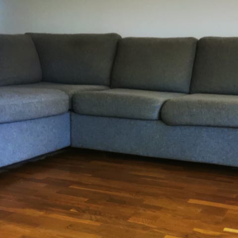 Så därför ska soffan UT! Den är stor och rejäl i fint men använt skick med avtagbar tvättbar klädsel. Jag orkar dock inte tvätta den innan och det finns ett litet hål i ena hörnet , syns knappt( därav super priset )