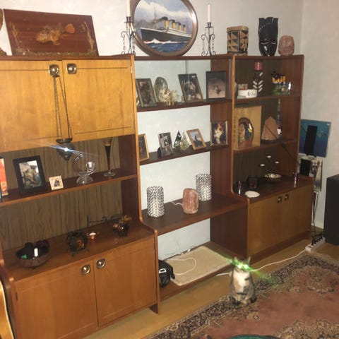Nätt bokhylla i almträ. Flyttbara hyllor.