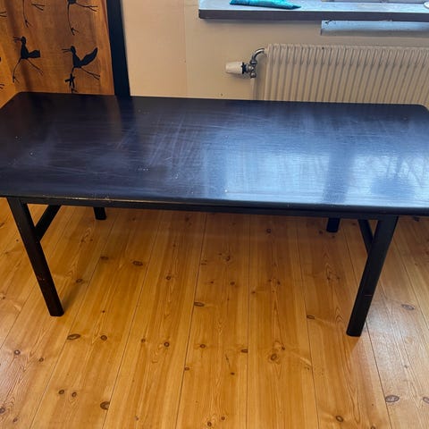 Soffbordet är mycket väl använt. Färgen har släppt på flera ställen, se bilder.