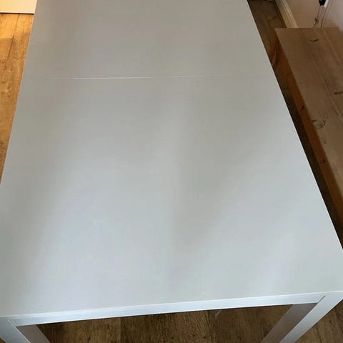 Fint utdragbart matbord från Ikea, modell Bjursta. Använt, men bra skick med två stycken iläggsskivor och gör det möjligt att anpassa bordets storlek efter behov.