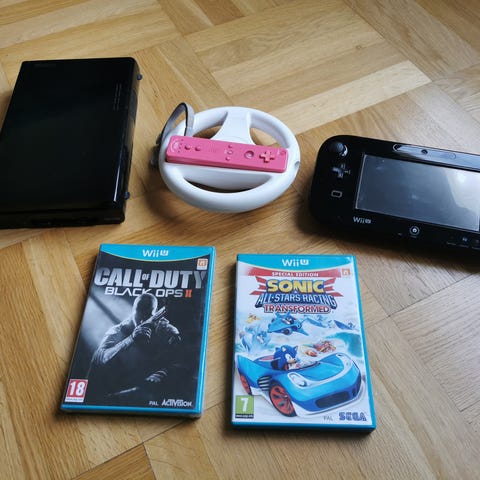 Svart konsol med svart extra penna + en laddare är SÅLD.