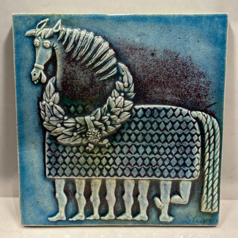 Vacker väggskulptur i stengods med blå glasyr. Signerad Gabi Citron - Tengborg, (1930-2009).