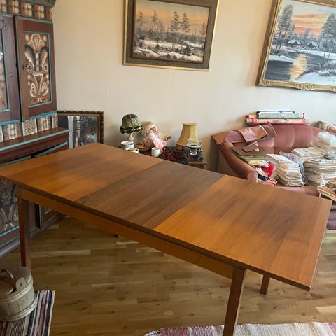 Säljer mitt matbord i ek. Bra skick, tungt och stort matbord.