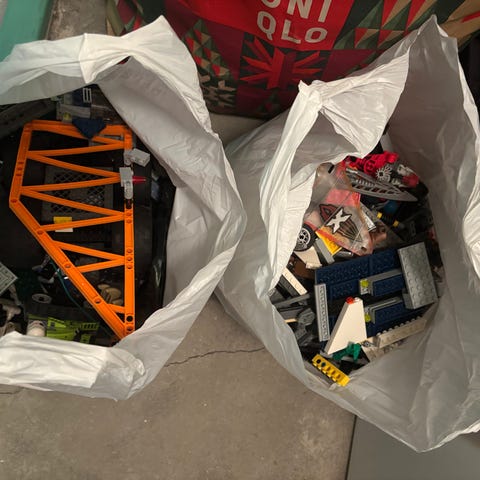 LEGO bitar och figurer inklusive olika fordon, halvfärdiga byggen och minifigurer. Se alla bilder!