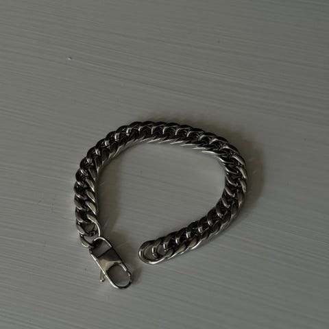 Säljer ett elegant armband i rostfritt stål med hög kvalitet och modern design.
