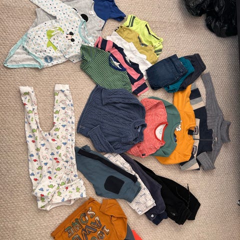 Allt på bilden inkl skor och stövlar strl 22 och vindfleece från geggamoja. Blandade märken, mest Lindex, p.o.p, kappahl, m.m. Även en uv tröja för sommaren.