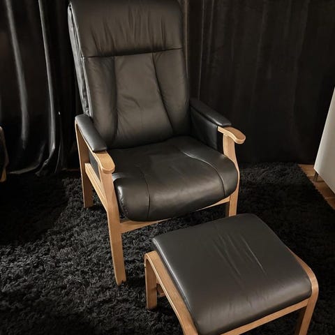 Modell Rune från Mio med lyfthjälp med tillhörande fotpall. Läder med Elfaner ben . Se kvitto .