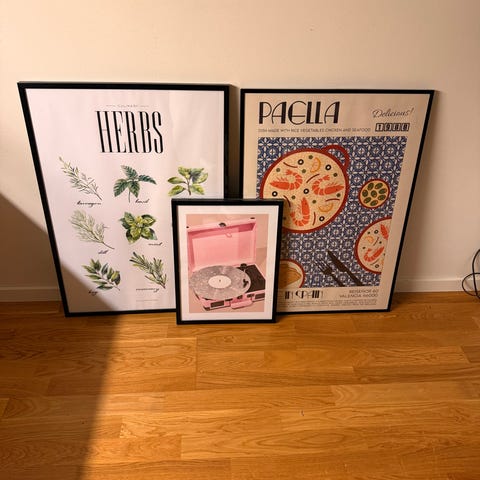 Tre vita träramar med bilder av blommor