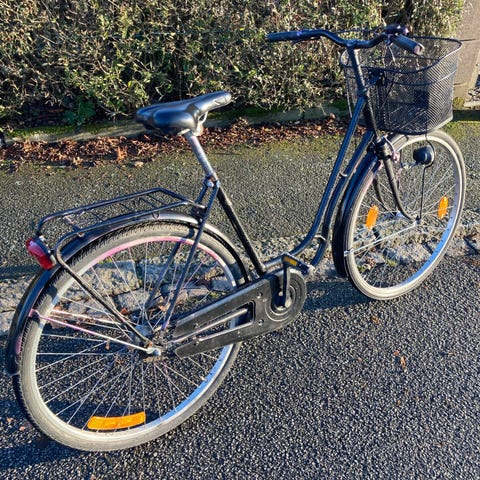 Hej! Jag säljer en fin och välfungerande damDBS. Den har tre växlar, fotbroms och handbroms samt korg. Dynamo lampa fram samt batterilampa bak. Helt ny växel vajer. Hjulen är 28 tum.