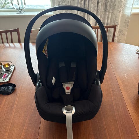 Cloud T i-Size, + adapter till barnvagn. Babyskyddet är designat för att användas för små barn och erbjuder säker transport i bil. Produkten är tillverkad med material som ger komfort och skydd under bilresor.