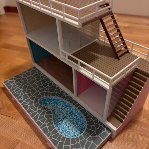 Iconic Lundby Dollhouse, but fully DIY-ed. All wallpaper and floors are handmade piece by piece (yes, even panels on the “second floor” and the roof). Truly dear project that I am ready to handover to someone who wants to play with it and decorate with furniture.