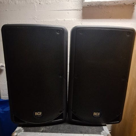 Dessa är med externa delningsfilter, som normalt sett sitter inne i högtalarna, dom två svarta lådorna som syns på bild. Finns repor i lacken på lådorna men dessa går ju att gömma undan.
