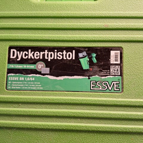 ESSVE Spikpistol FN 34/90 är ett verktyg för spikning som används för bygg- och snickeriarbeten. Den är utformad för att användas med spikar av typen FN 34/90. Produkten levereras i ett förvaringsetui som skyddar verktyget när det inte används.