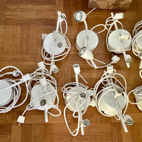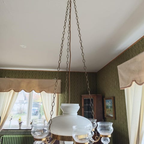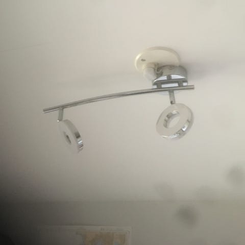 Denna lampa passar i flera olika boendestilar och ger starkt fokuserat ljus tack vare 4,5-watts strålkastare. Tyvärr är armaturen lite skadad på några ställen som syns på ett foto, detta syns knappt när lampan sitter i taket. Lampan är cirka 70 cm lång och 13 cm bred, höjden 12–15 cm beroende på vinkeln där fläckarna placeras.