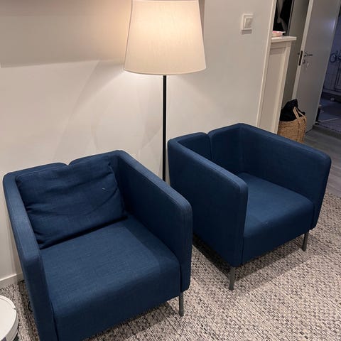 2 coola svarta fåtöljer säljes för 100kr styck. Materialet är svart men ser ut som svart trä.